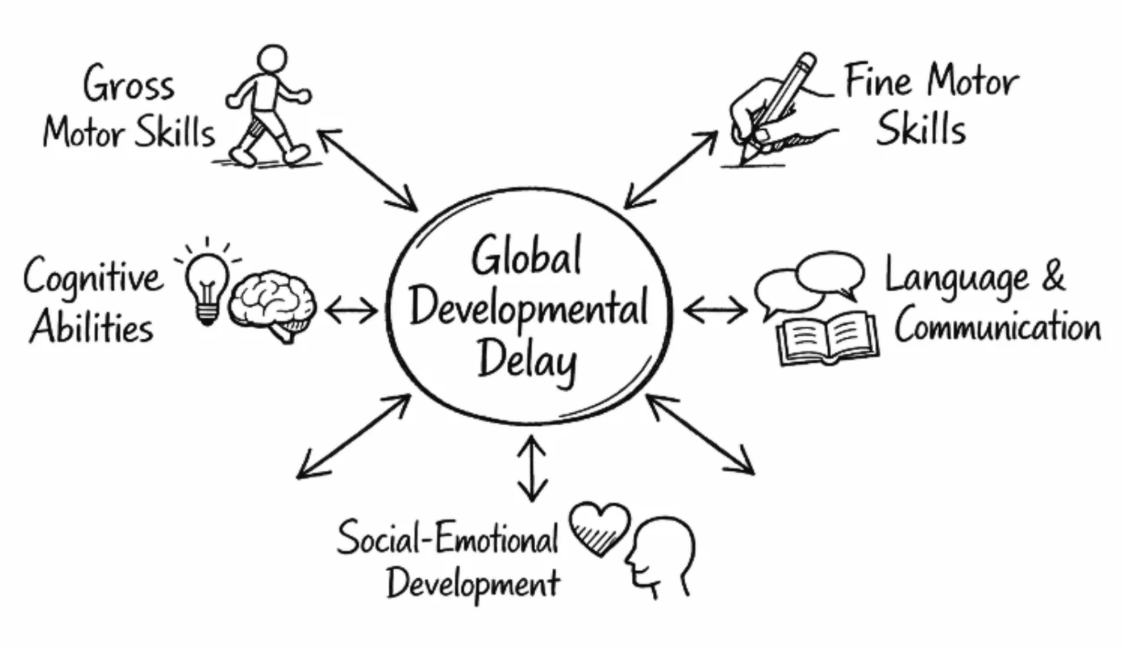 Global Developmental Delay (GDD) involves significant delays across multiple developmental areas, including cognitive, language, motor, social, or adaptive skills.
